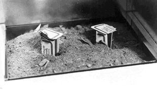 zum Boden des Kastens in das Räuchermehl graben, jeweils einen gerollten